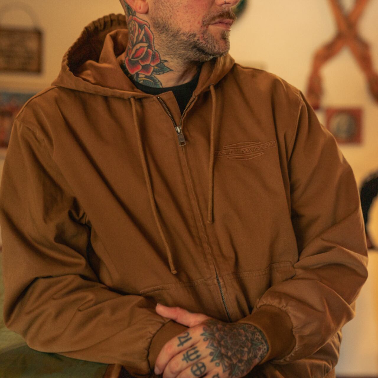 ・素材:100%コットンヘビーウェイトツイル。ウォッシュ加工を施し、柔らかな風合いに仕上げました。裏地は100%ポリエステルタフタ。軽量ポリフィルを使用