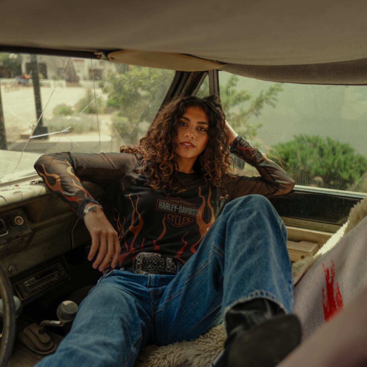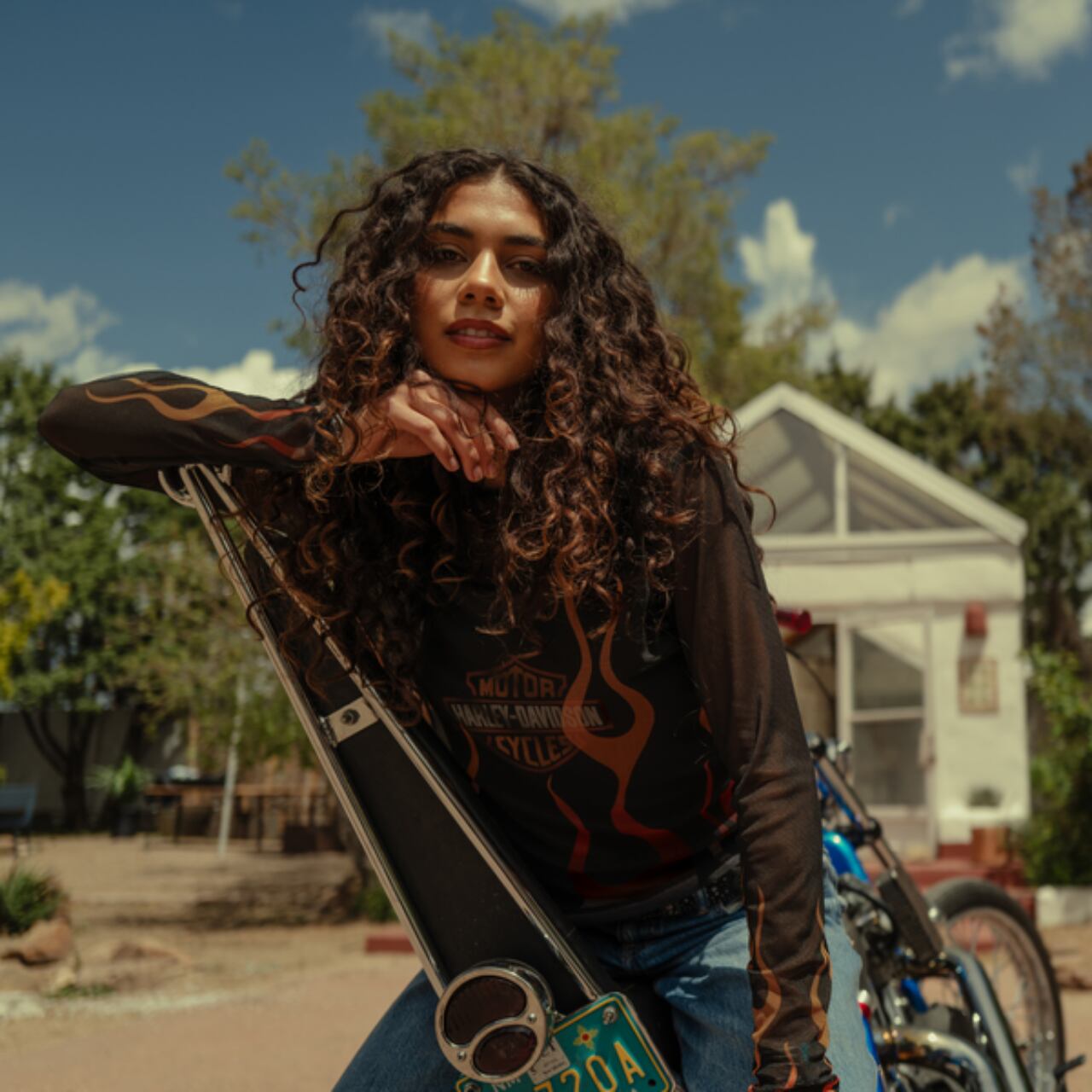 ボディと袖口にあしらわれたグラデーションのフレイムスデザインが、着るだけで視線を集めるアイテムです。