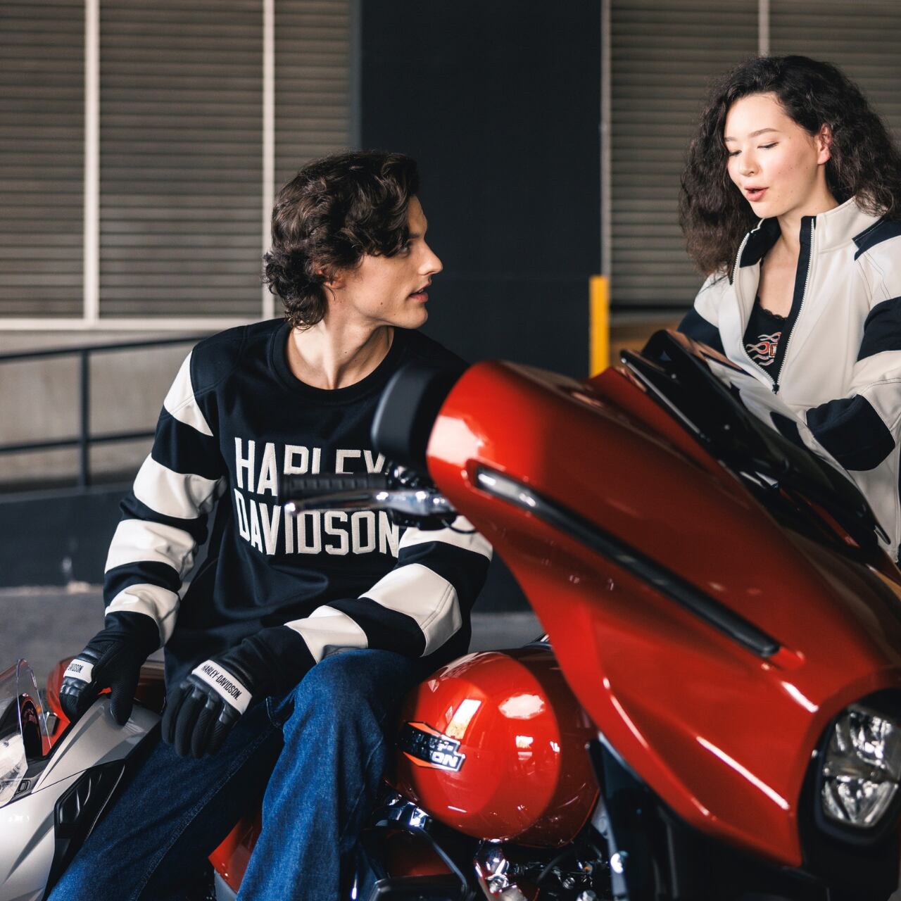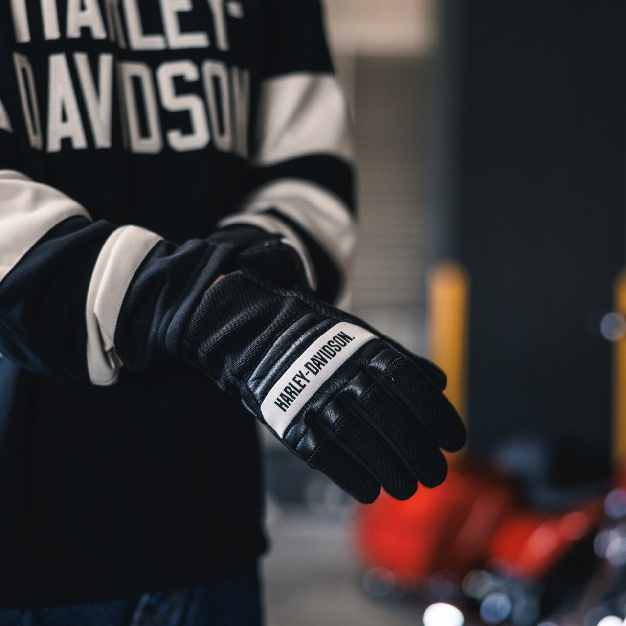 コントラストのあるステッチとH-D®のグラフィックは、スタイルのアクセントとなり、ライディングシーンでの存在感を引き立てます。