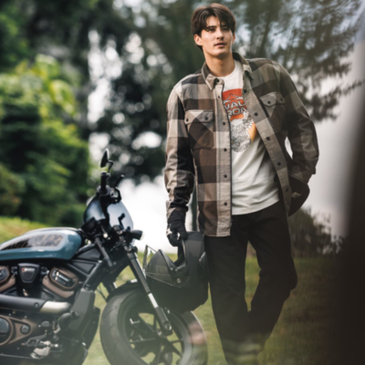 鮮やかなヴィンテージグラフィックは1982年のミルウォーキー・アイアンTシャツを彷彿とさせ、イーグルの翼がクロームのテールパイプをイメージさせるデザインが特徴です。
