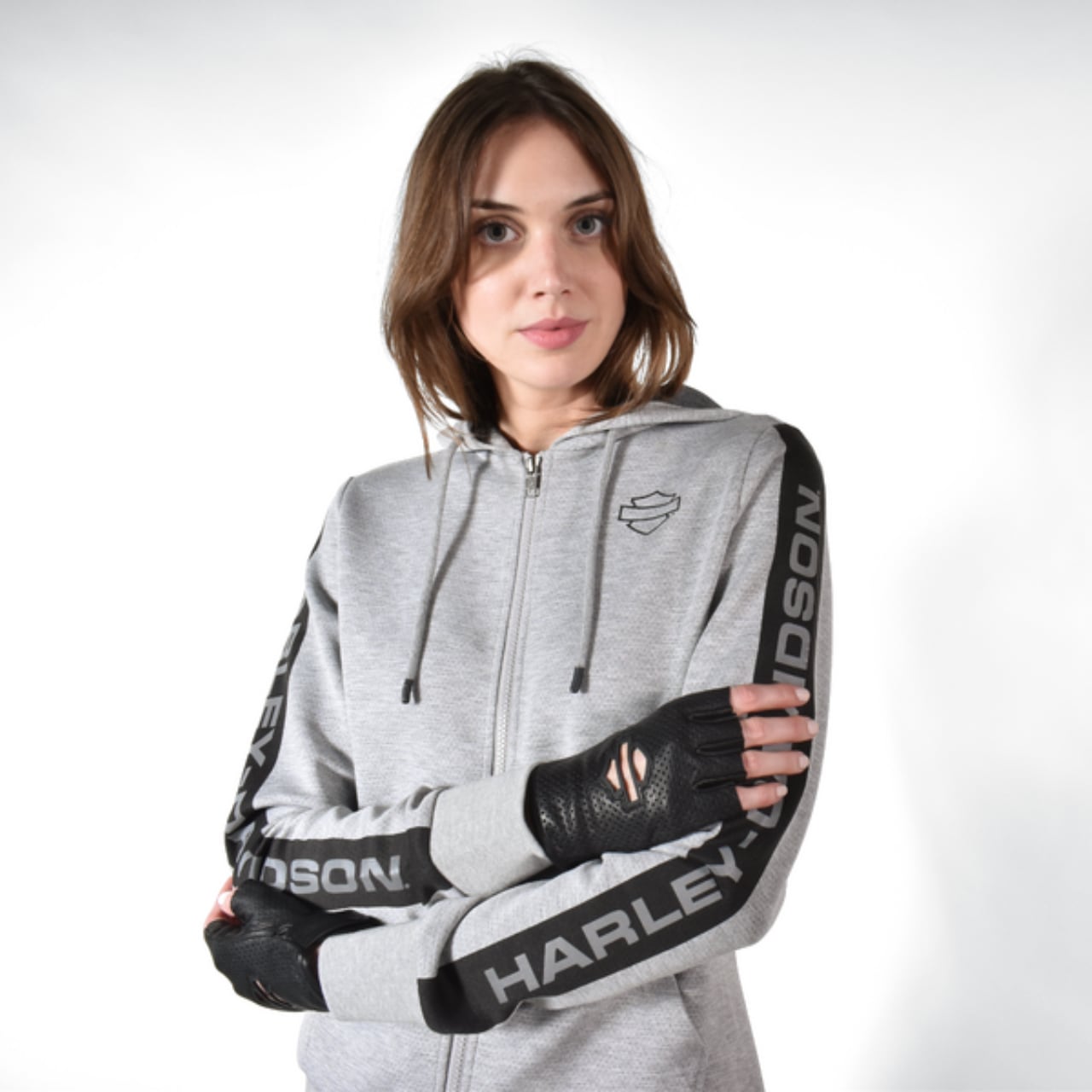 左胸には印象的なバー&シールドが施され、両袖にはHarley-Davidson®スクリプトロゴの反射スクリーンプリントグラフィックがあしらわれています。