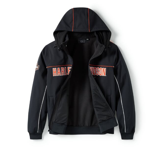 ・デザインディテール:コントラストの効いたパイピングとピーシング。取り外し可能なジッパー付きフード