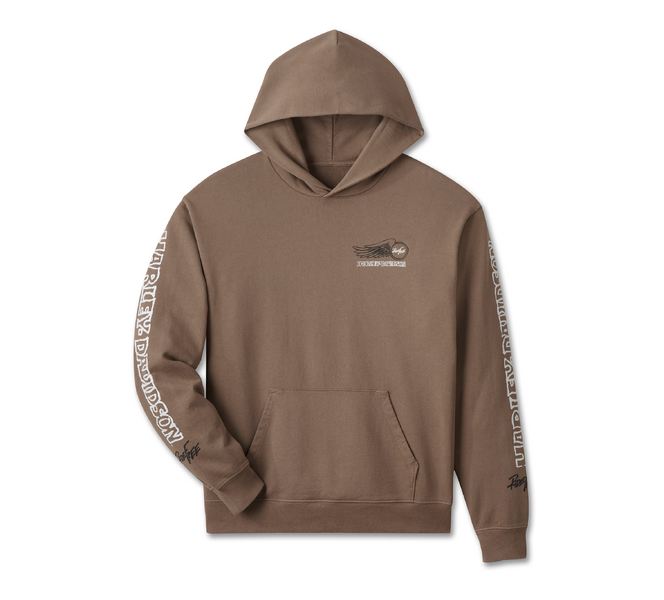 ハーレーの創始者の1人ウィリアム・A・ダビッドソンの孫であり、アイコニックな存在であるウィリー・G・ダビッドソンによる実際のスケッチとサイン入りのアートワークが特徴。