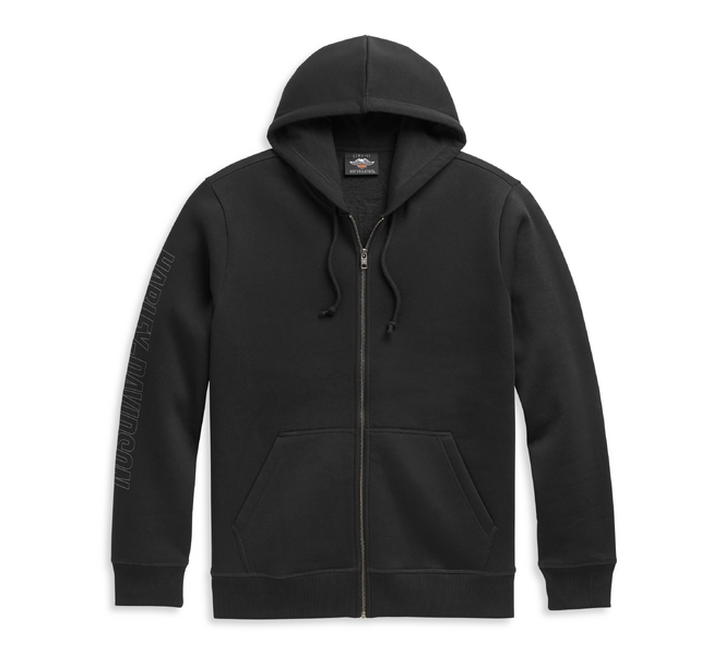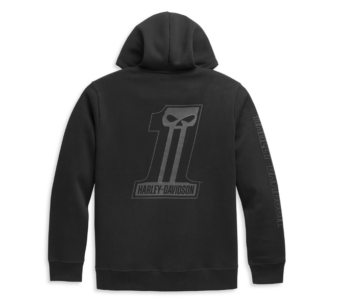 右袖には、Harley-Davidson®スクリプトロゴ、バックにはナンバーワンウィリーG™スカルロゴグラフィックが施されており、存在感を放ちます。