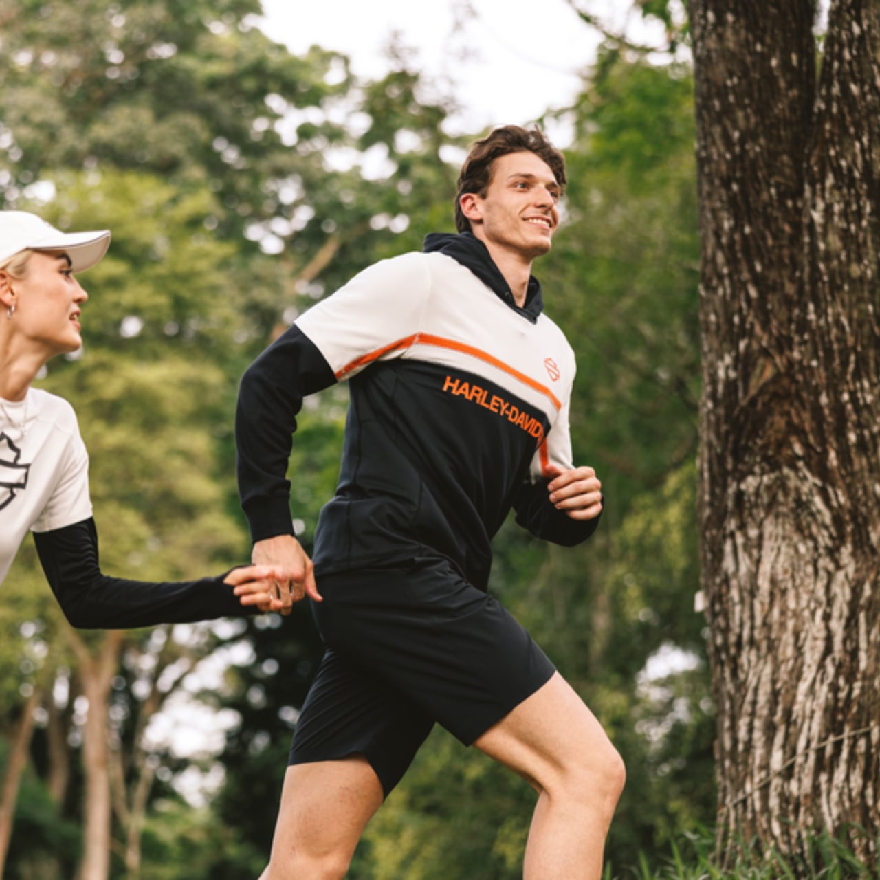 オレンジのアクセントと控えめなバー&シールドロゴがスタイルを引き立て、どんなシーンでもおしゃれに決まります。