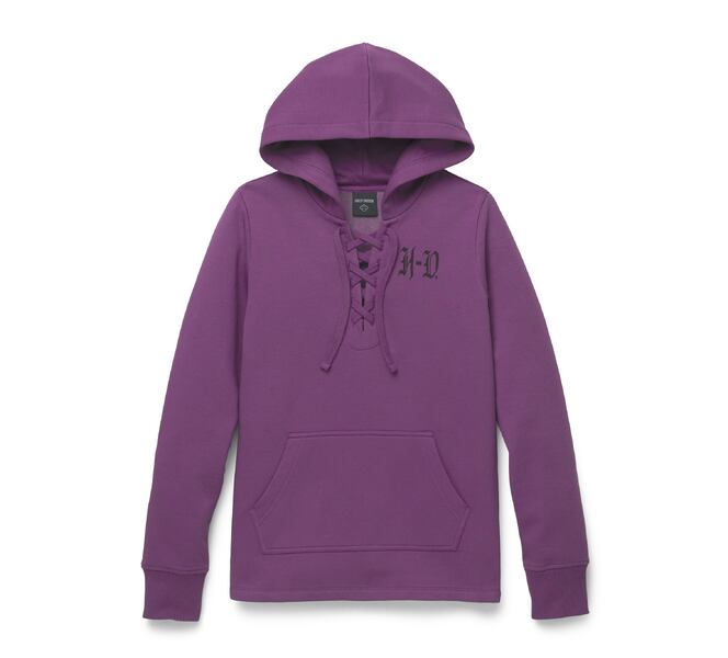 ・デザイン詳細:リブ編みの袖口、ジャージー裏地のフード、レースアップのネックライン
