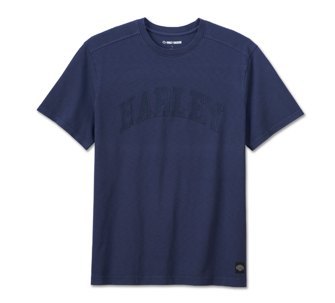 コットンスラブジャージー素材を使用し、バックヨークパイシングやリブニットのネックライン、フロントにはアーチ型のハーレーロゴのサテンアップリケが施されており、シンプルかつ他にはない個性的なディテールが魅力!