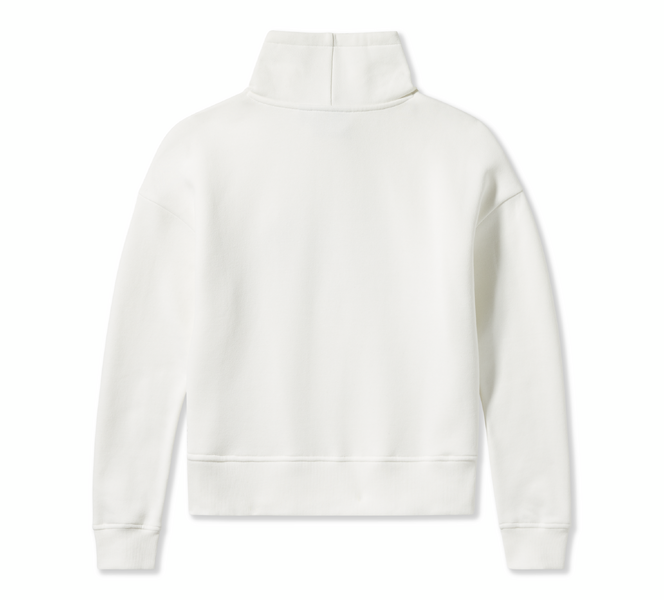 コットンとポリエステルフリースを使用したファネルネックプルオーバーです。