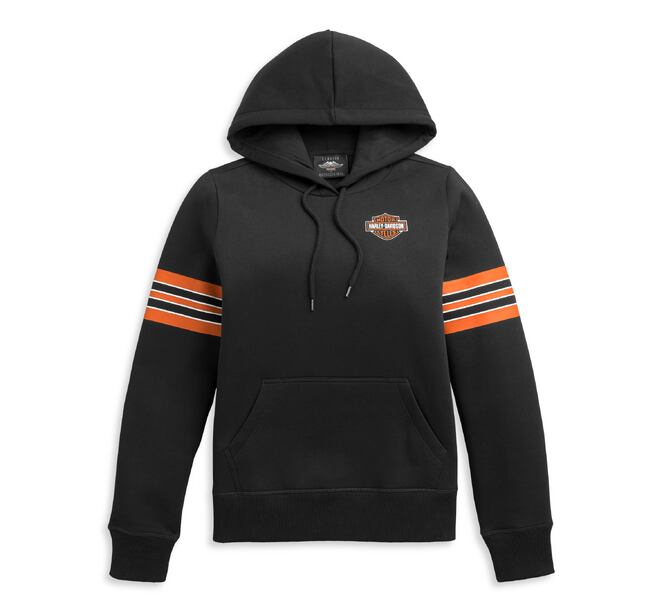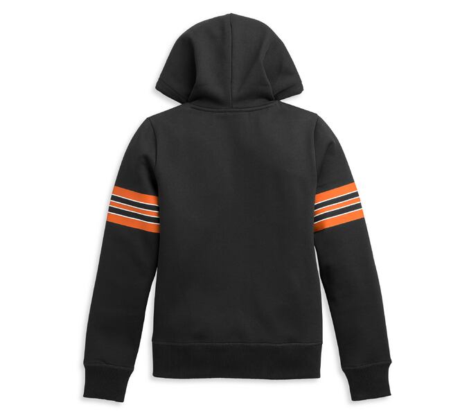 レディース スリーブストライプロゴプルオーバーパーカー