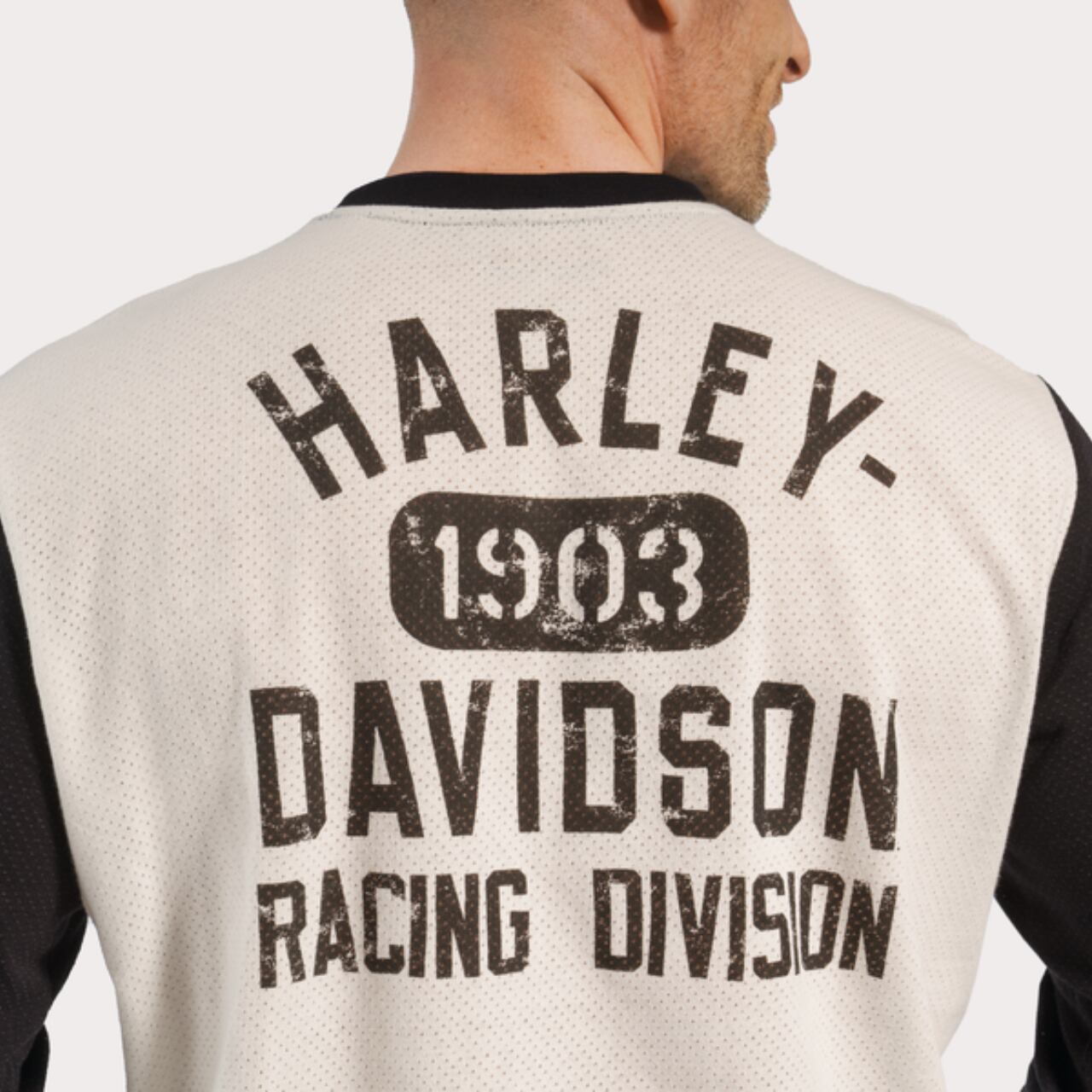 レトロなリンガーネックと洗練された袖デザインは、バイクレーシングチームの雰囲気を演出します。