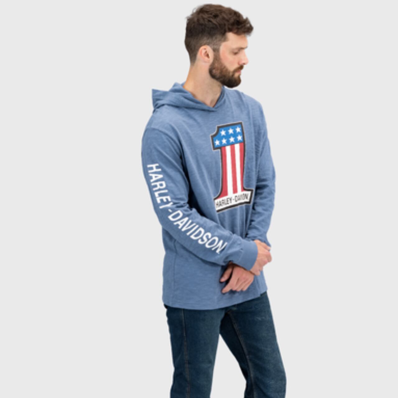 メンズ #1グラフィックフード付きロングスリーブTシャツ