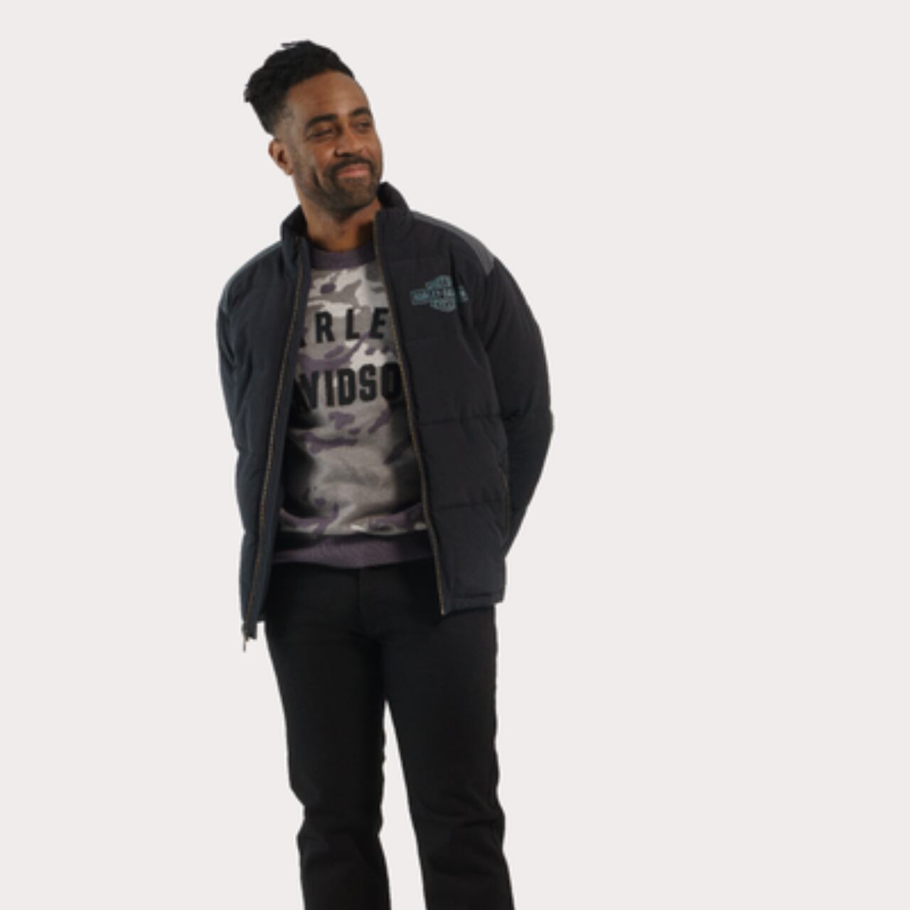 ・デザインディテール:キルティング。ヨークと袖にコントラストのあるステッチ