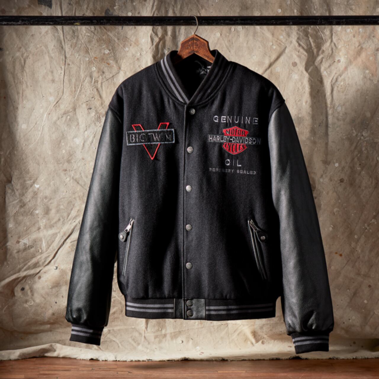 メンズ Vツインバーシティレザージャケット