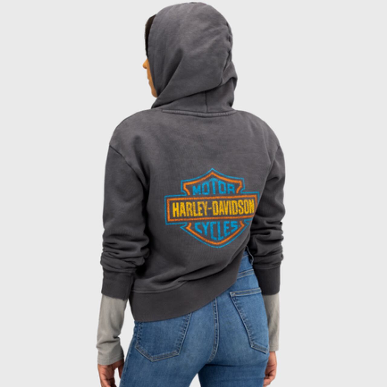 ・デザインディテール:リブ編みの袖口とウエストバンド。ジャージー素材の裏地付きクロスオーバーフード